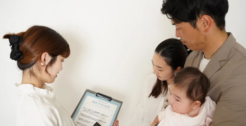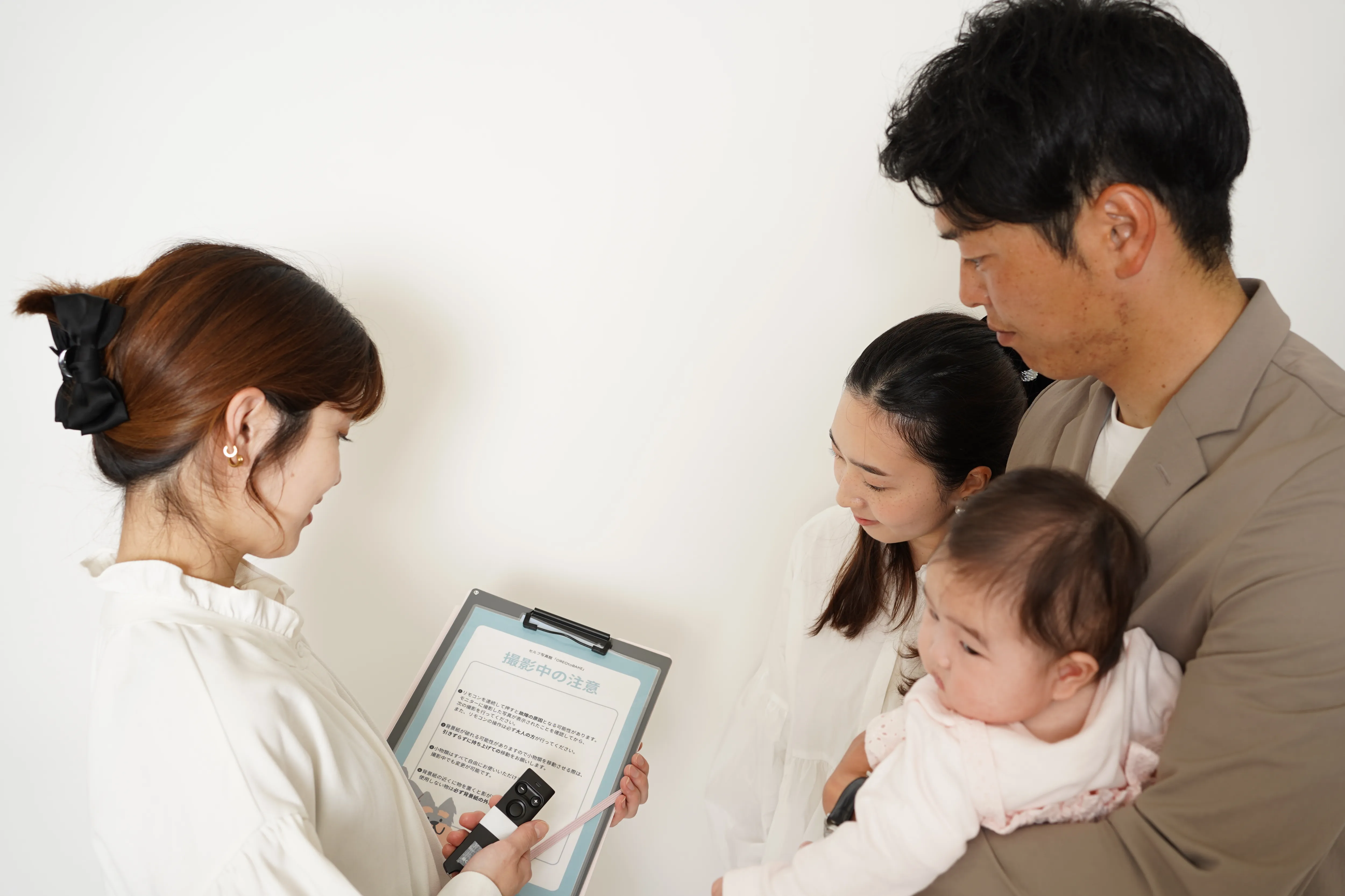 スタッフが撮影方法を丁寧にレクチャーし、小物やポーズ例も豊富にご用意しています。リラックスした空間で、自分らしい一枚を楽しく残せます。